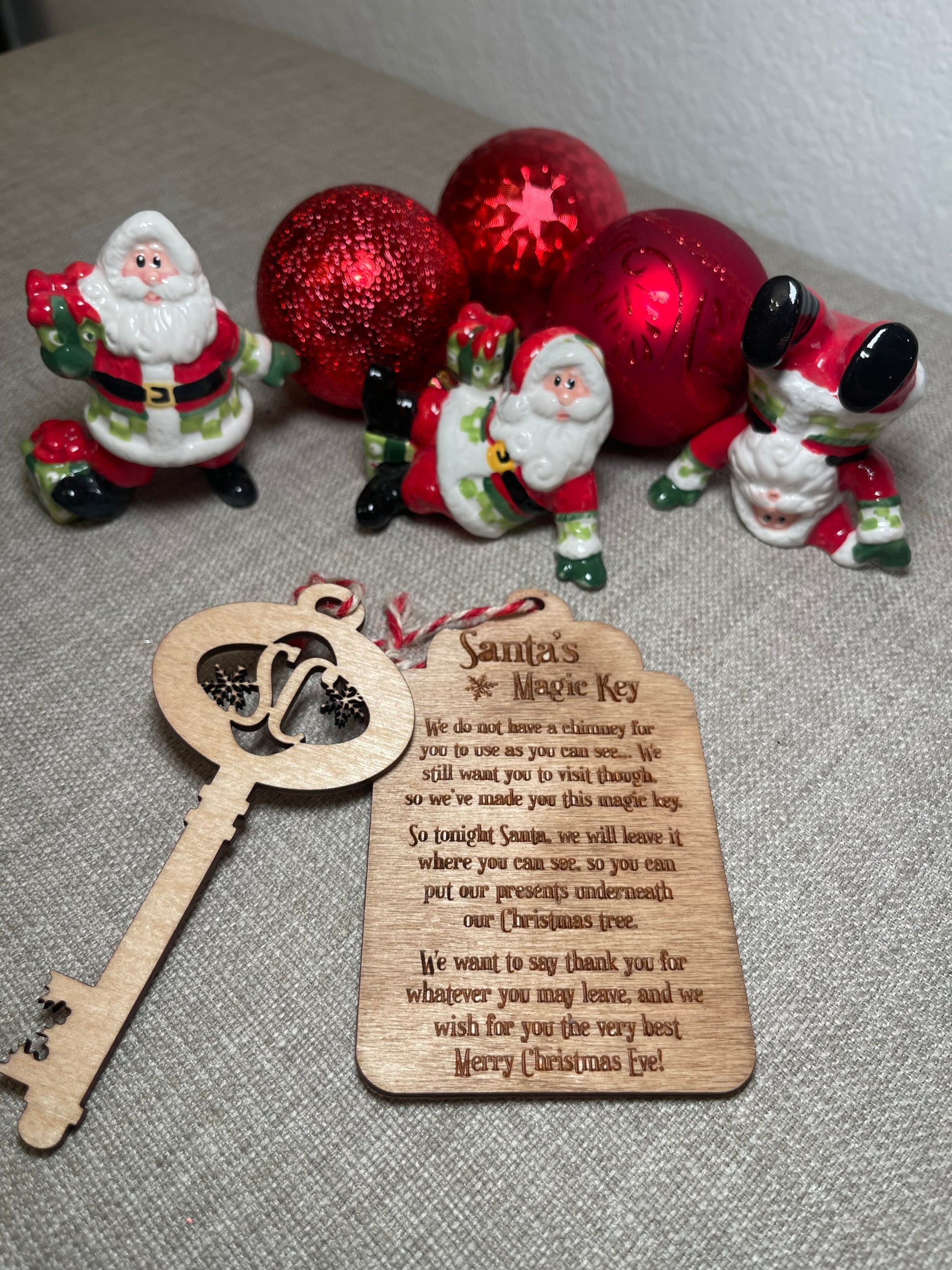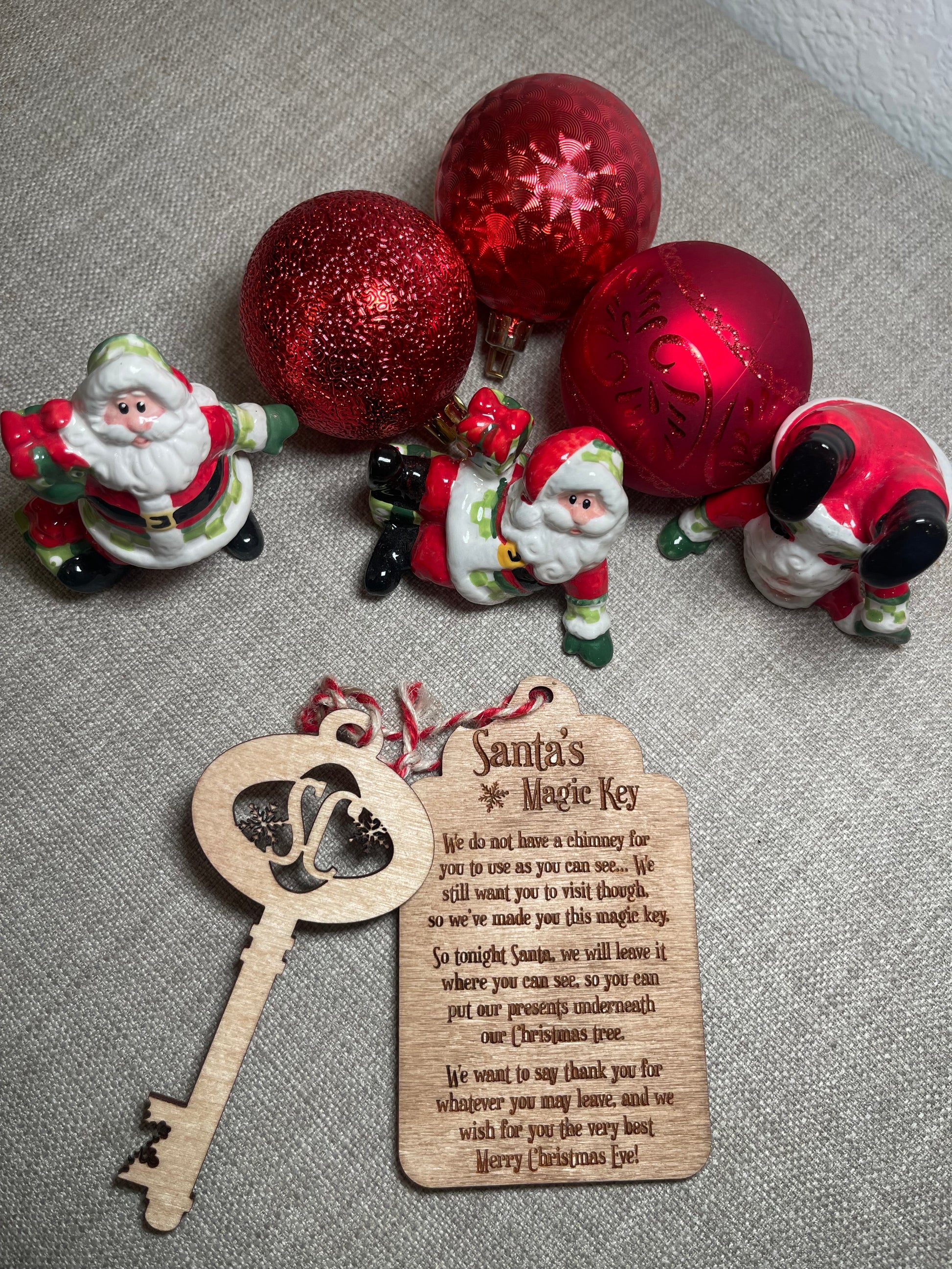 "We do not use have a chimney for you to use as you can see... We still want you to visit though, so we've made you this magic key. So tonight Santa, we will leave it where you can see, so that you can put our presents underneath our Christmas tree. We want to say thank you for whatever you leave, and we wish for you the very best Merry Christmas Eve!"