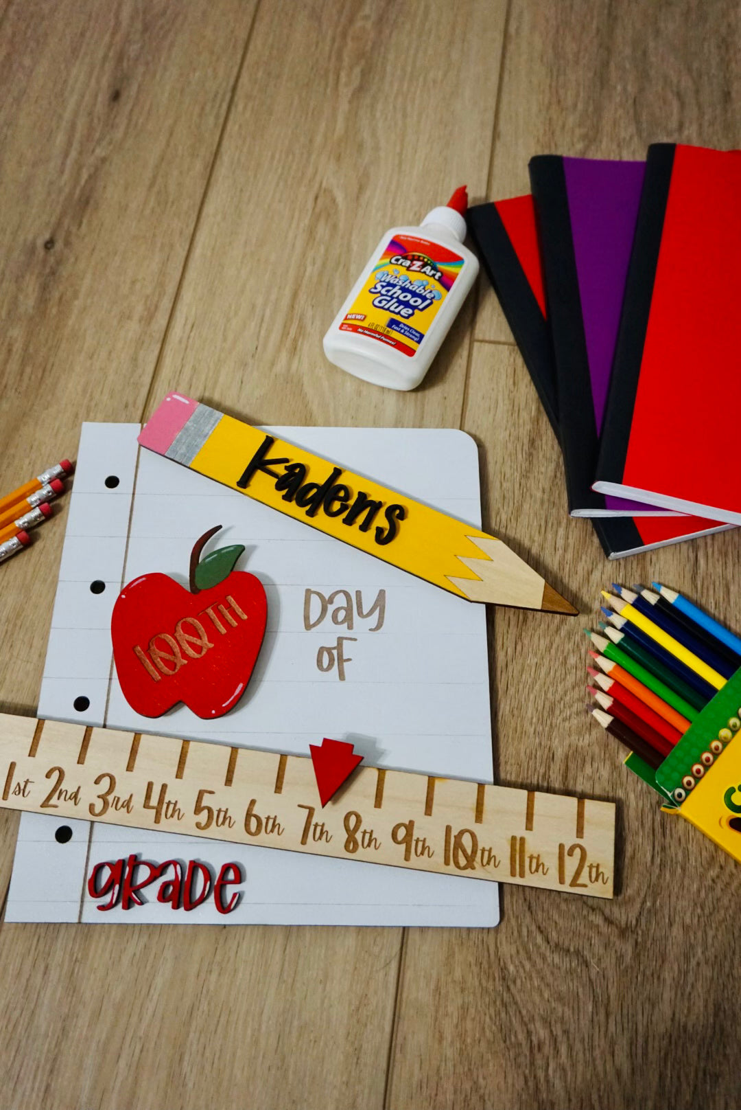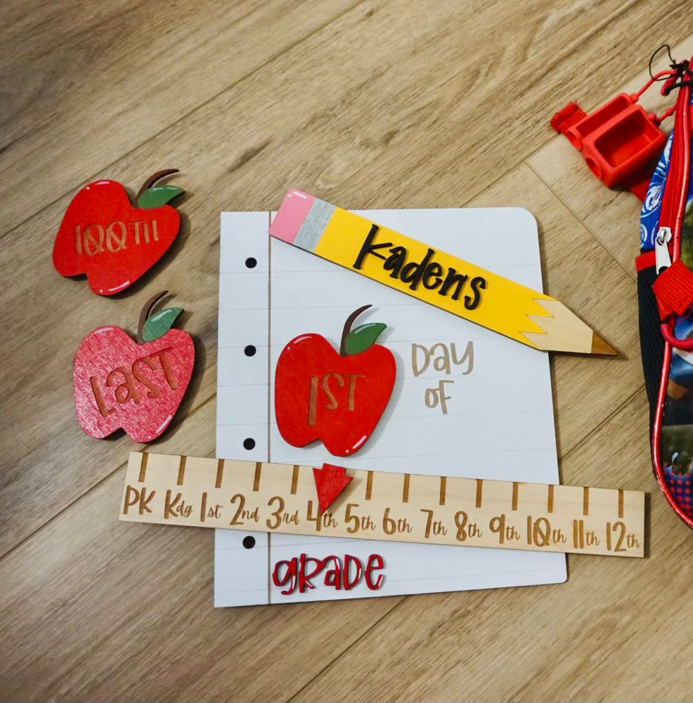 - Document your child’s school year with 3 interchangeable apples that read- 1st, last & 100th. Have more than one child? No problem! The top pencil is also interchangeable! Add-on additional personalized pencils for $5 per pencil!